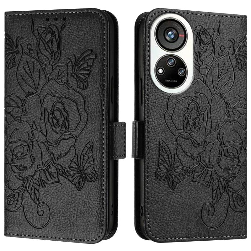 For ZTE Blade V40s Embossed Rose RFID Anti-theft Leather Phone Case(Black)