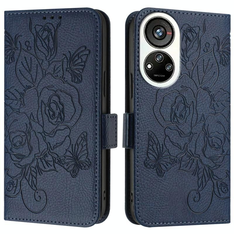 For ZTE Blade V40s Embossed Rose RFID Anti-theft Leather Phone Case(Dark Blue)