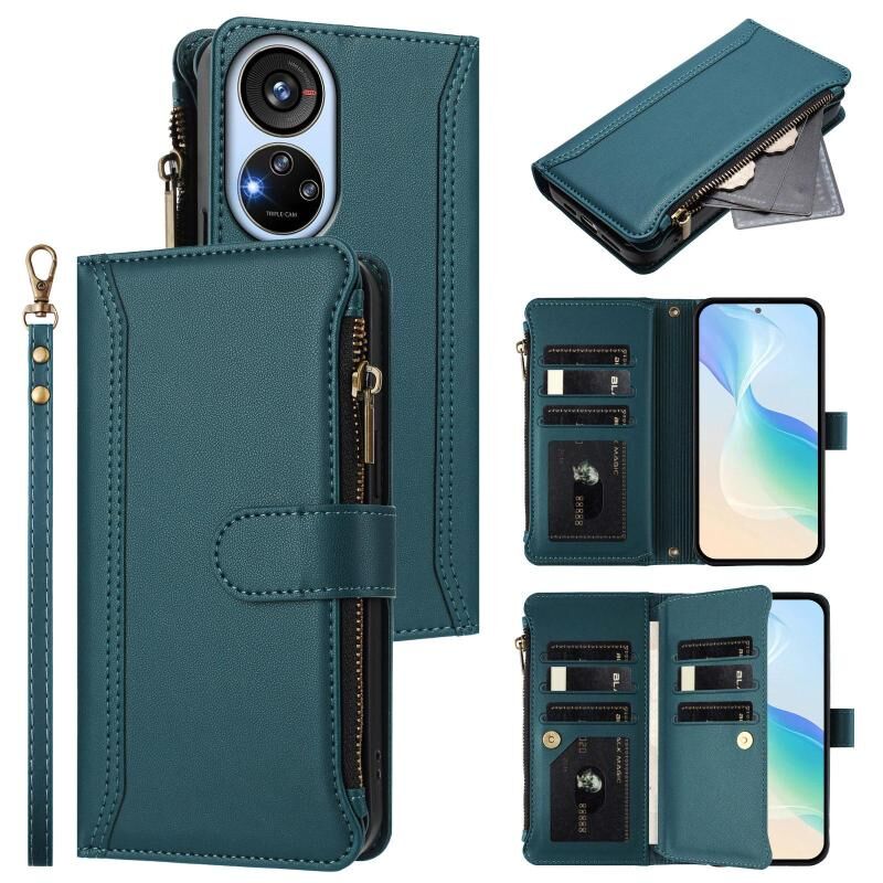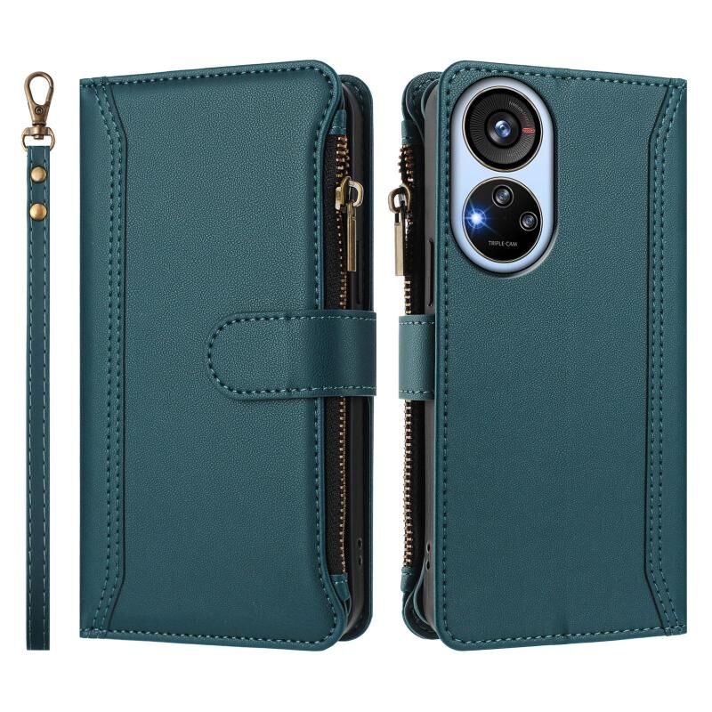 Για ZTE Blade V40s Μαγνητικό Κλείσιμο 9 Θήκες Κάρτας Δερμάτινη Θήκη με Φερμουάρ και Λουρί Χεριού (Σκούρο Μπλε)