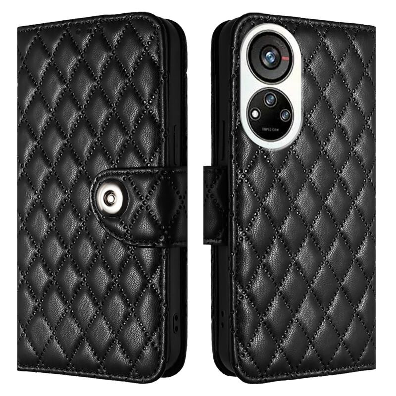 Για το ZTE Blade V40s Rhombic Texture Flip δερμάτινη θήκη τηλεφώνου με κορδόνι (Μαύρο)