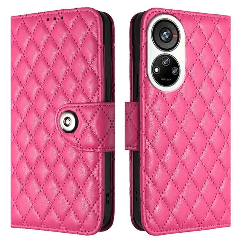 Για το ZTE Blade V40s Rhombic Texture Flip δερμάτινη θήκη τηλεφώνου με κορδόνι (Rose Red)