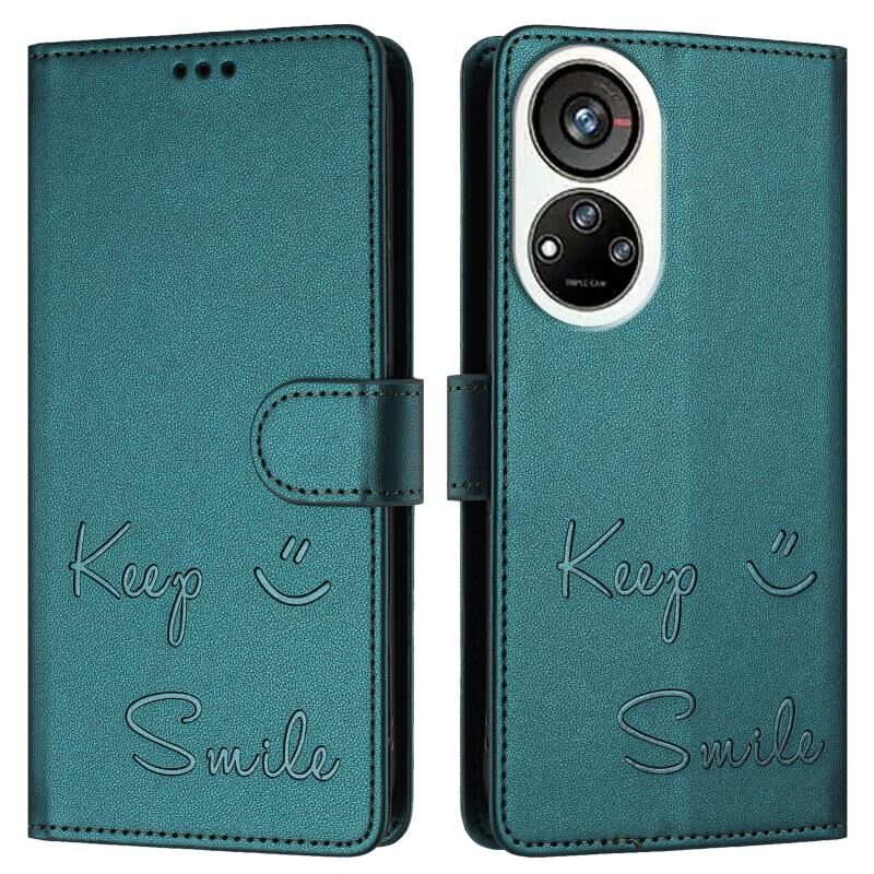 Για ZTE Blade V40s Χαμόγελο ανάγλυφο RFID δερμάτινη θήκη τηλεφώνου (Πράσινο παγώνι)