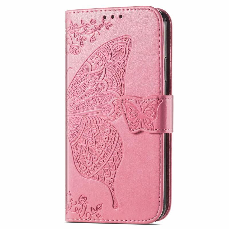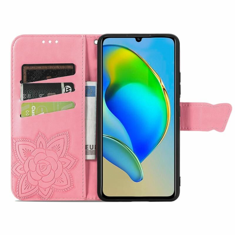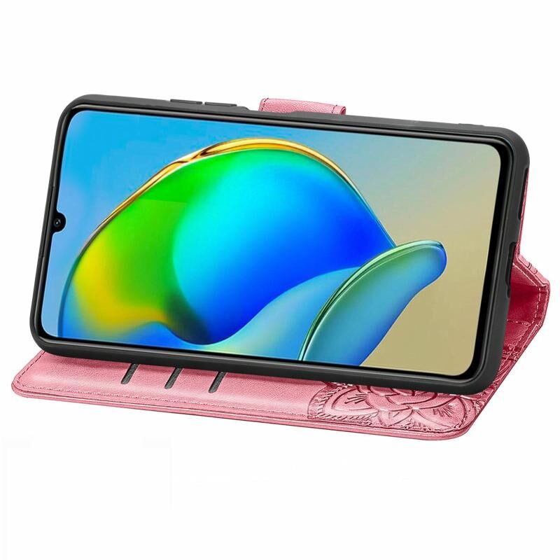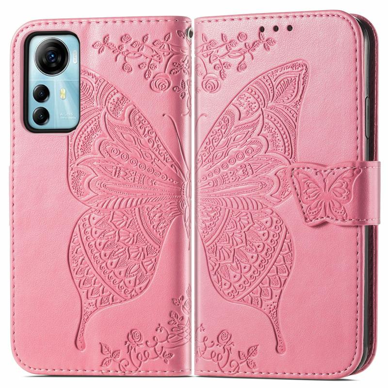For ZTE Blade V41 Smart Butterfly Love Flower Embossed Leather Phone Case(Pink)