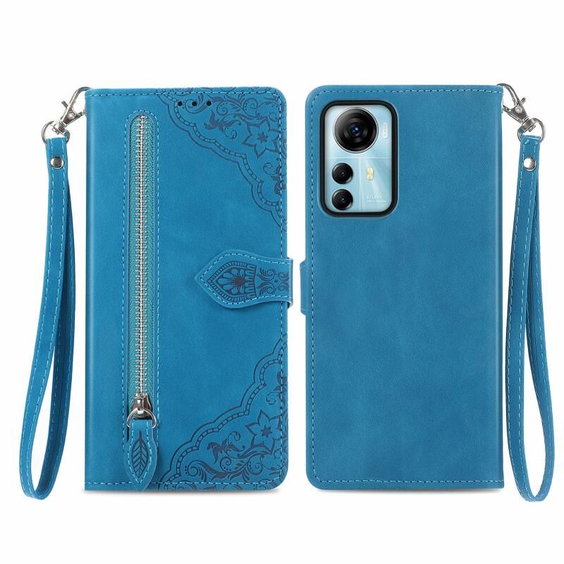 Για ZTE Blade V41 Smart ανάγλυφο λουλούδι φερμουάρ δερμάτινη θήκη τηλεφώνου (μπλε)