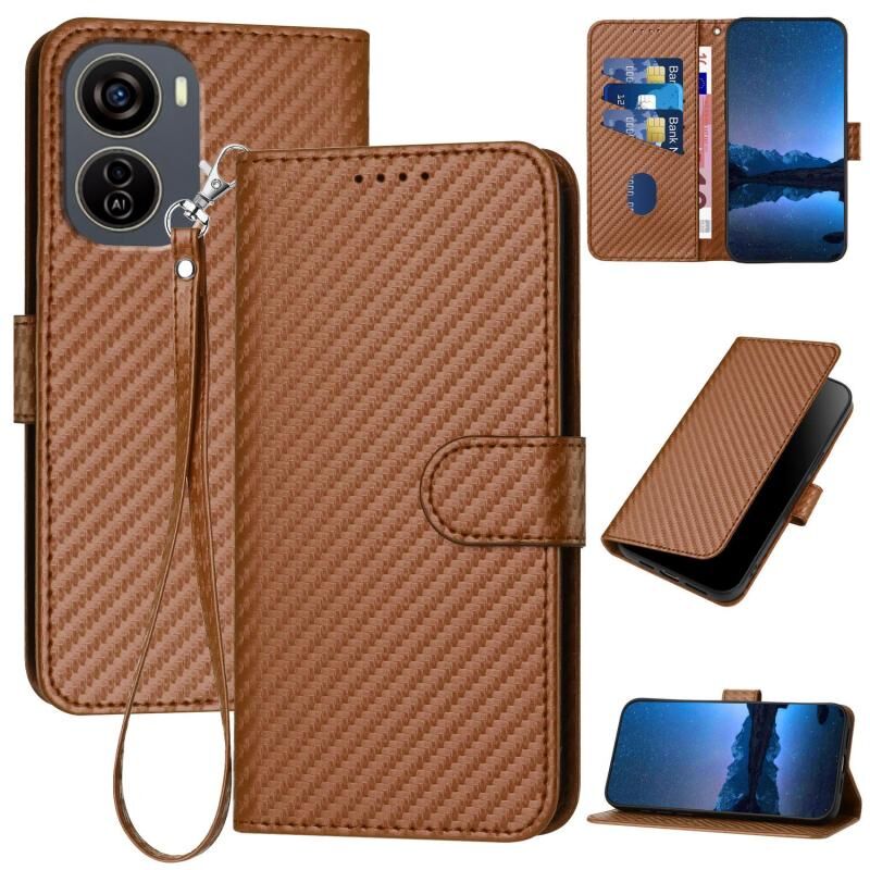 For ZTE Blade V50 Design 5G / Nubia Neo 5G YX0070 Carbon Fiber Buckle Leather Phone Case with Lanyard(Coffee)