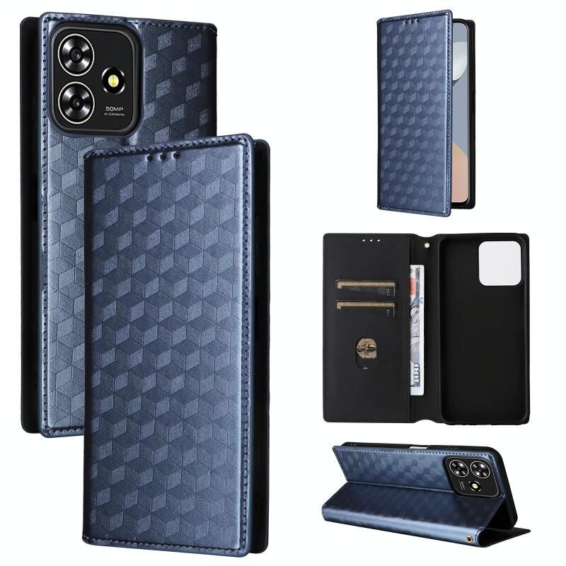 For ZTE Blade V50 Smart / Axon 50 Lite Cubic Grid Texture Flip Leather Phone Case(Blue)