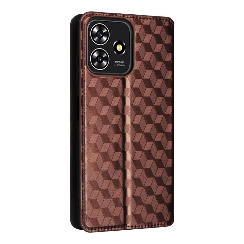 For ZTE Blade V50 Smart / Axon 50 Lite Cubic Grid Texture Flip Leather Phone Case(Brown)