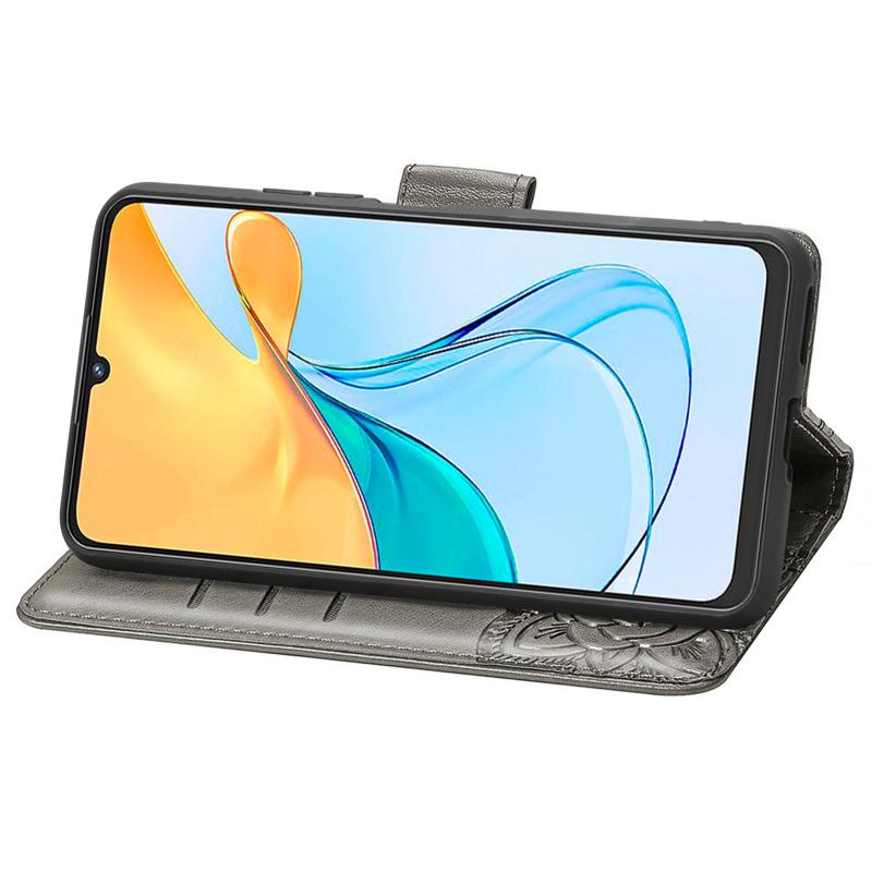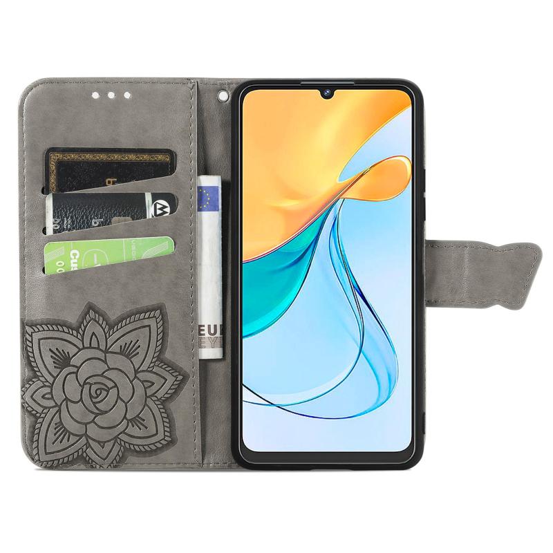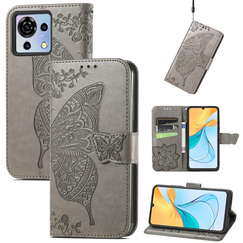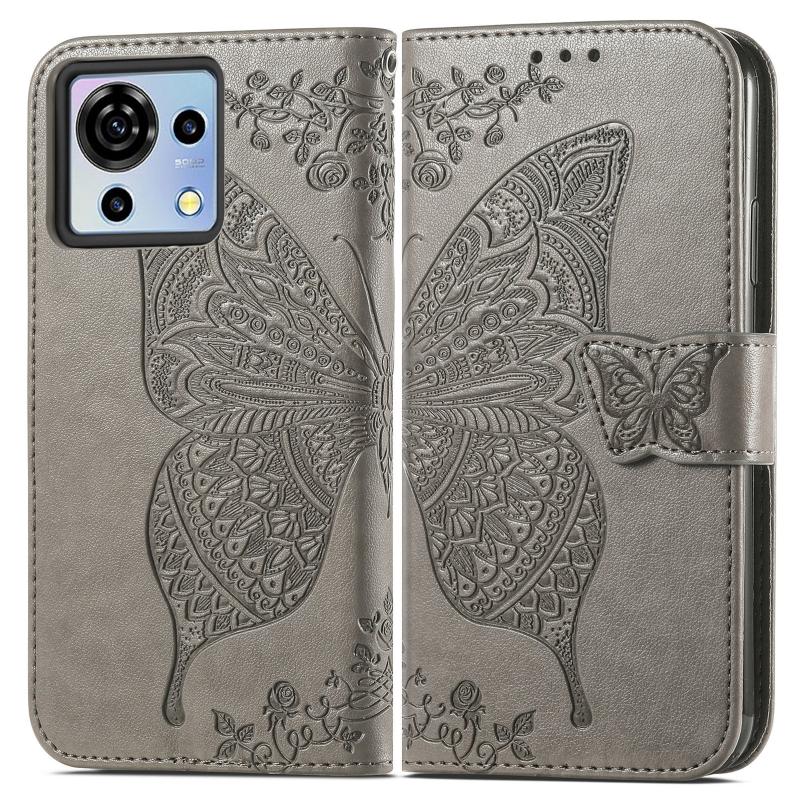 For ZTE Blade V50 Vita Butterfly Love Flower Embossed Leather Phone Case(Gray)