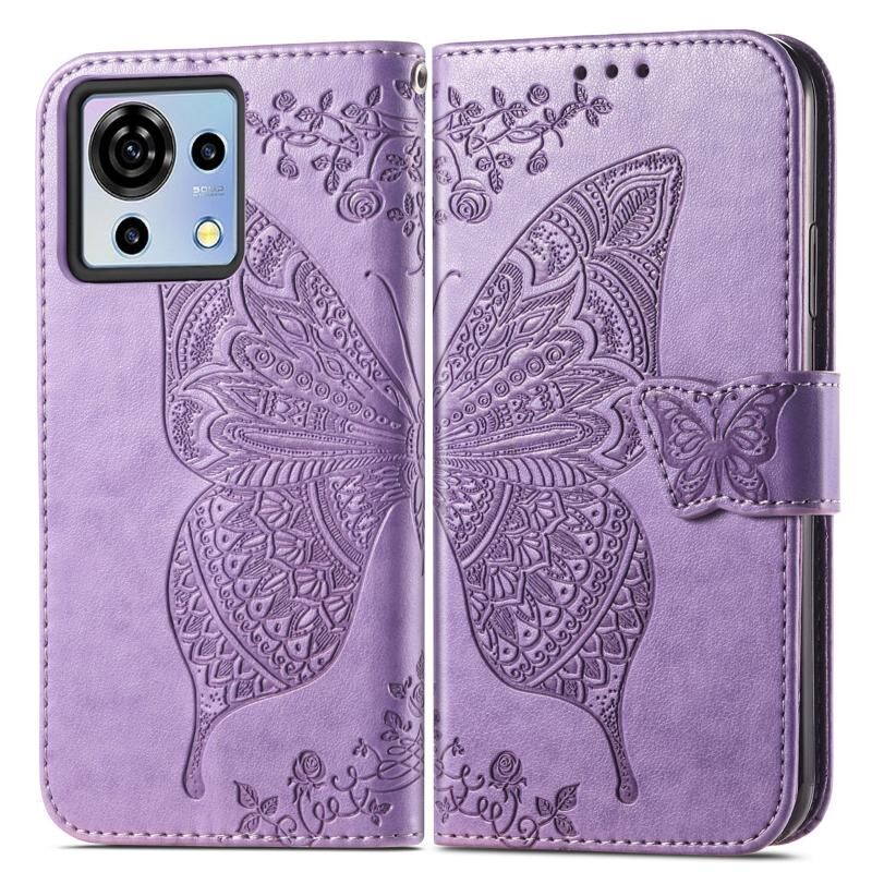 For ZTE Blade V50 Vita Butterfly Love Flower Embossed Leather Phone Case(Light Purple)