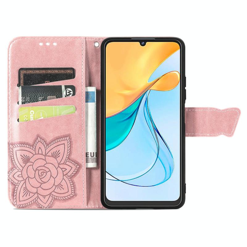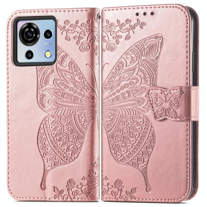 For ZTE Blade V50 Vita Butterfly Love Flower Embossed Leather Phone Case(Rose Gold)
