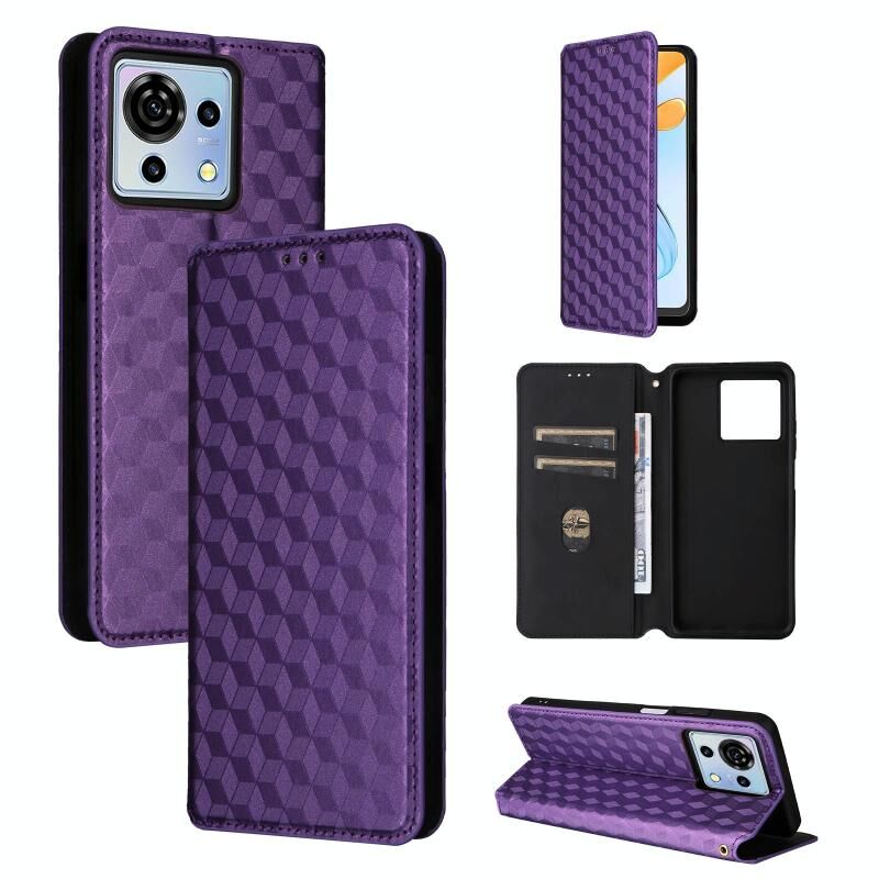 For ZTE Blade V50 Vita Cubic Grid Texture Flip Leather Phone Case(Purple)