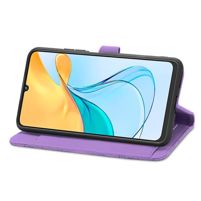 Για ZTE Blade V50 Vita ανάγλυφο λουλούδι φερμουάρ δερμάτινη θήκη τηλεφώνου (μωβ)