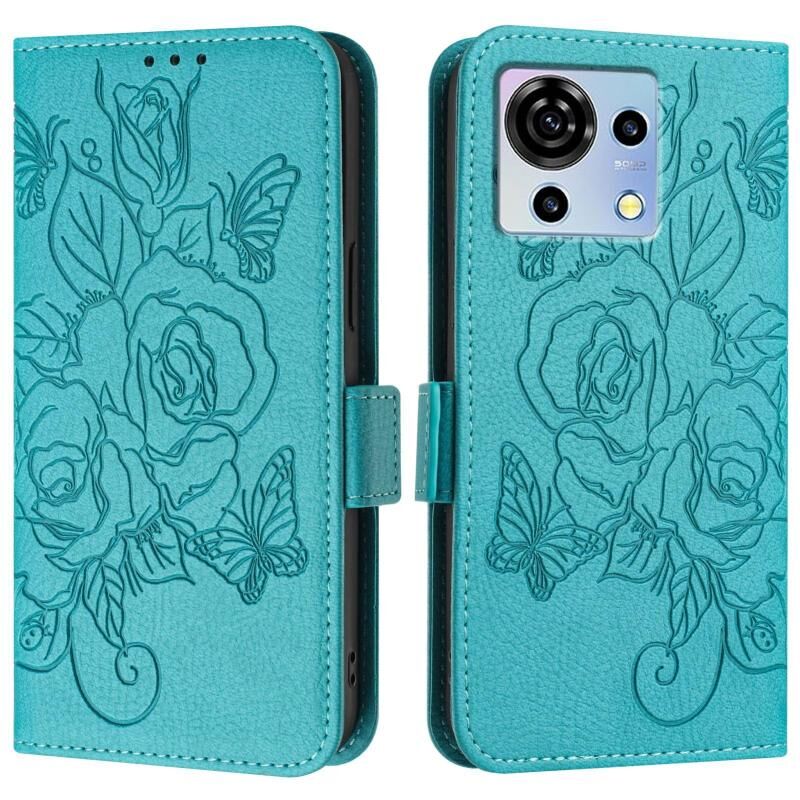 For ZTE Blade V50 Vita Embossed Rose RFID Anti-theft Leather Phone Case(Light Blue)