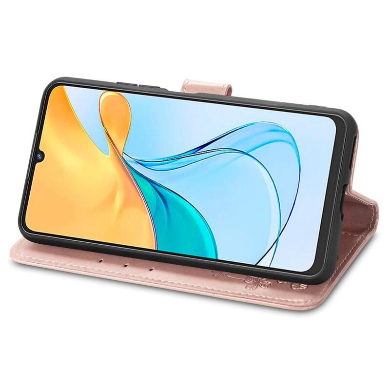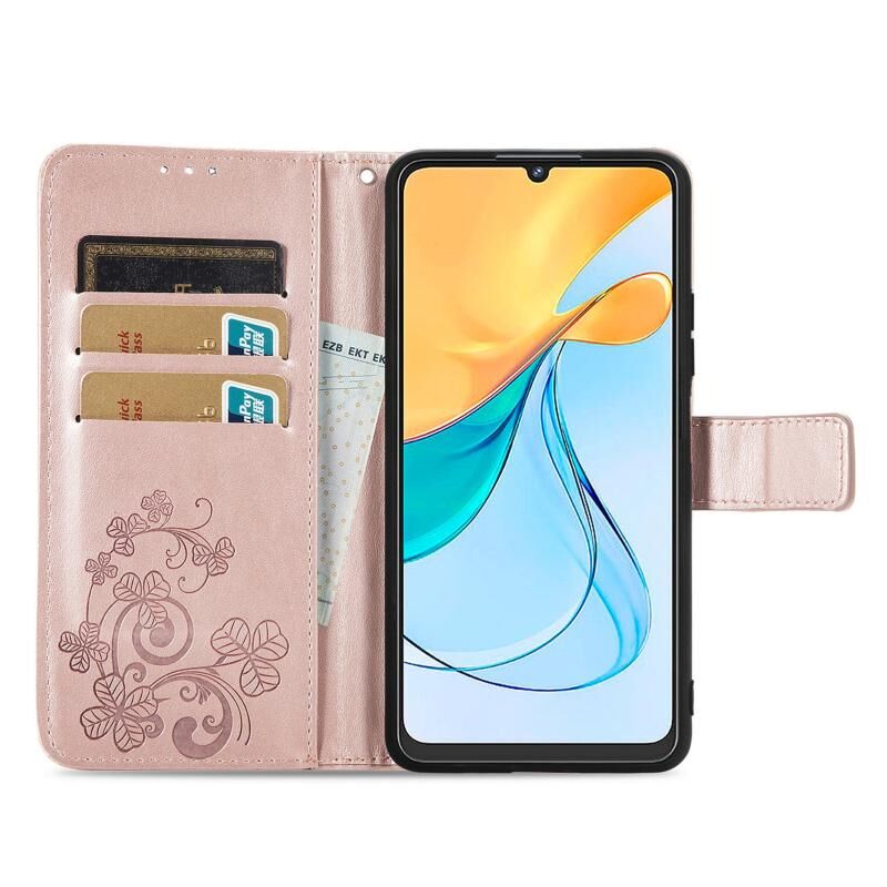 Για ZTE Blade V50 Vita τετράφυλλο κούμπωμα ανάγλυφη δερμάτινη θήκη τηλεφώνου (Rose Gold)