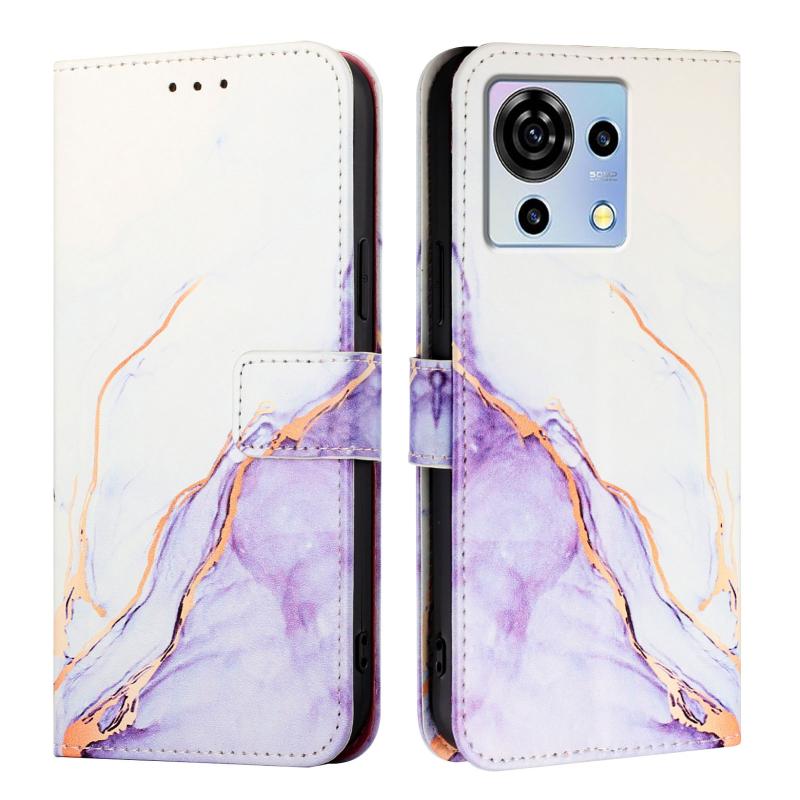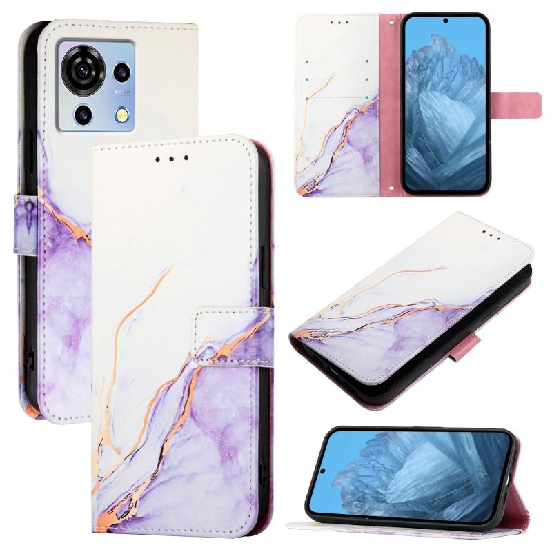 For ZTE Blade V50 Vita PT003 Marble Pattern Flip Leather Phone Case(White Purple)