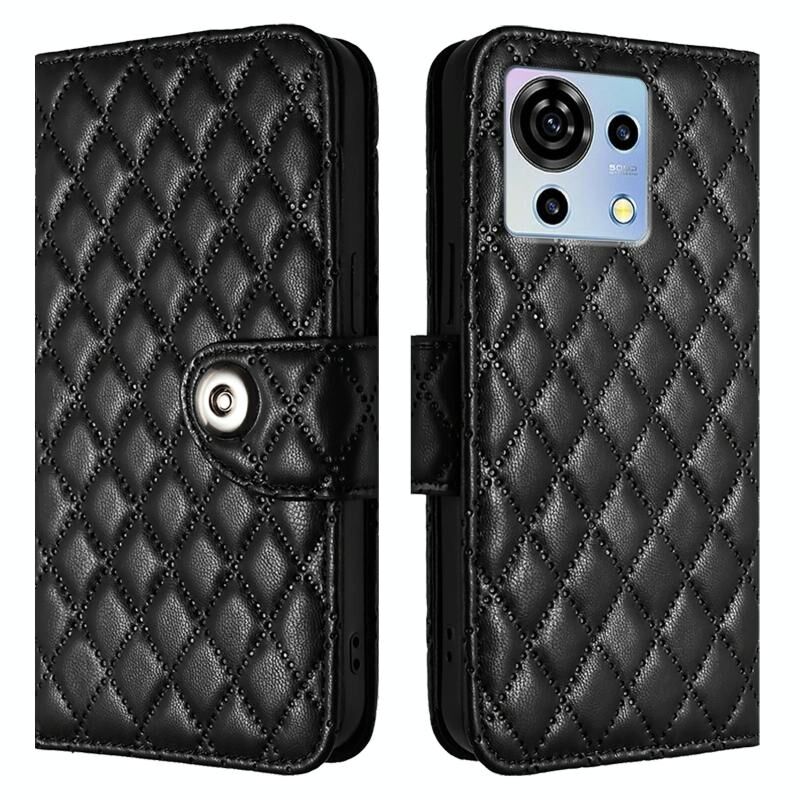 Για ZTE Blade V50 Vita Rhombic υφή Flip δερμάτινη θήκη τηλεφώνου με κορδόνι (μαύρο)
