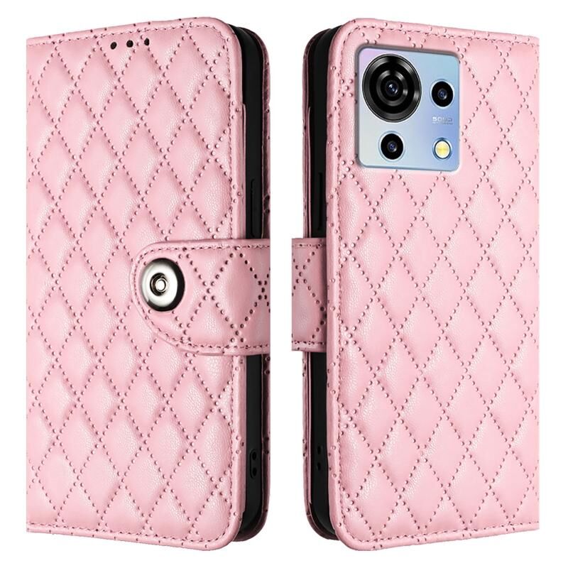 Για ZTE Blade V50 Vita Rhombic υφή Flip δερμάτινη θήκη τηλεφώνου με κορδόνι (ροζ)