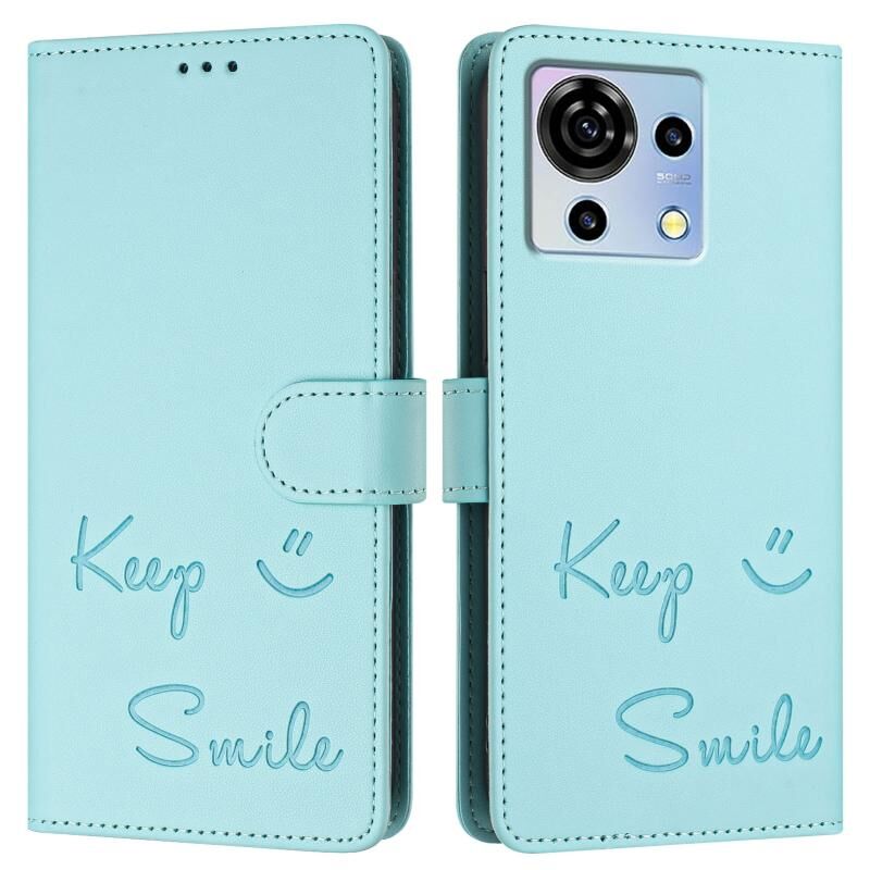 Για ZTE Blade V50 Vita Vita χαμόγελο ανάγλυφο RFID δερμάτινη θήκη τηλεφώνου (πράσινο χρώμα)