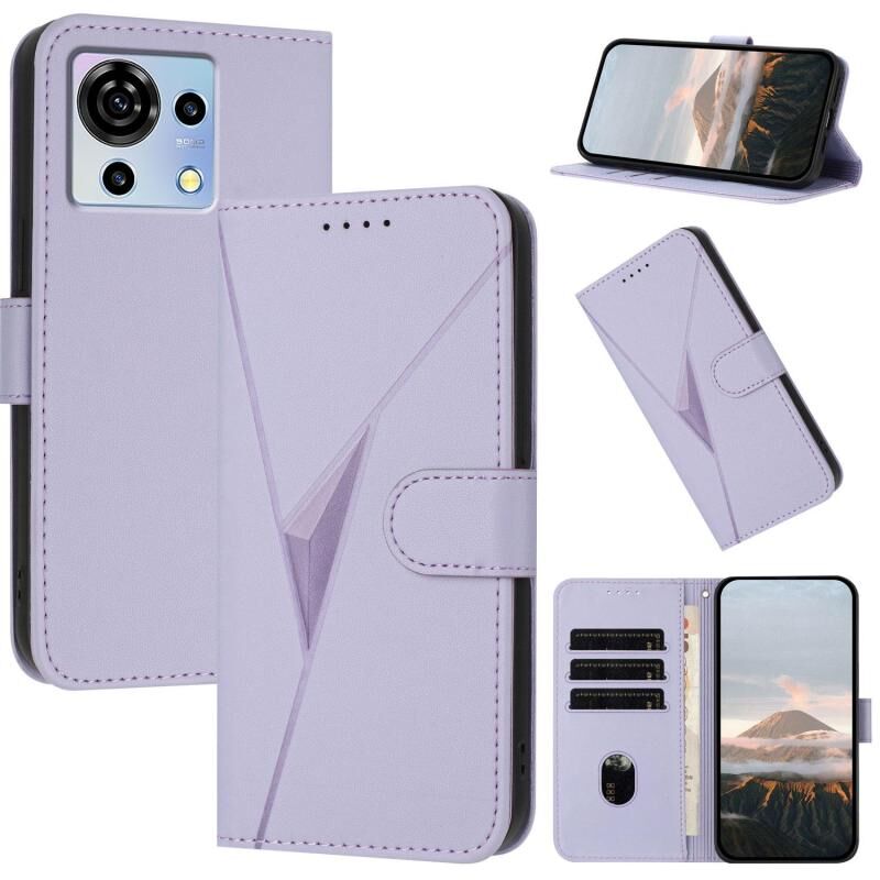 For ZTE Blade V50 Vita Triangle Pattern Buckle Clasp Leather Phone Case(Light Purple)