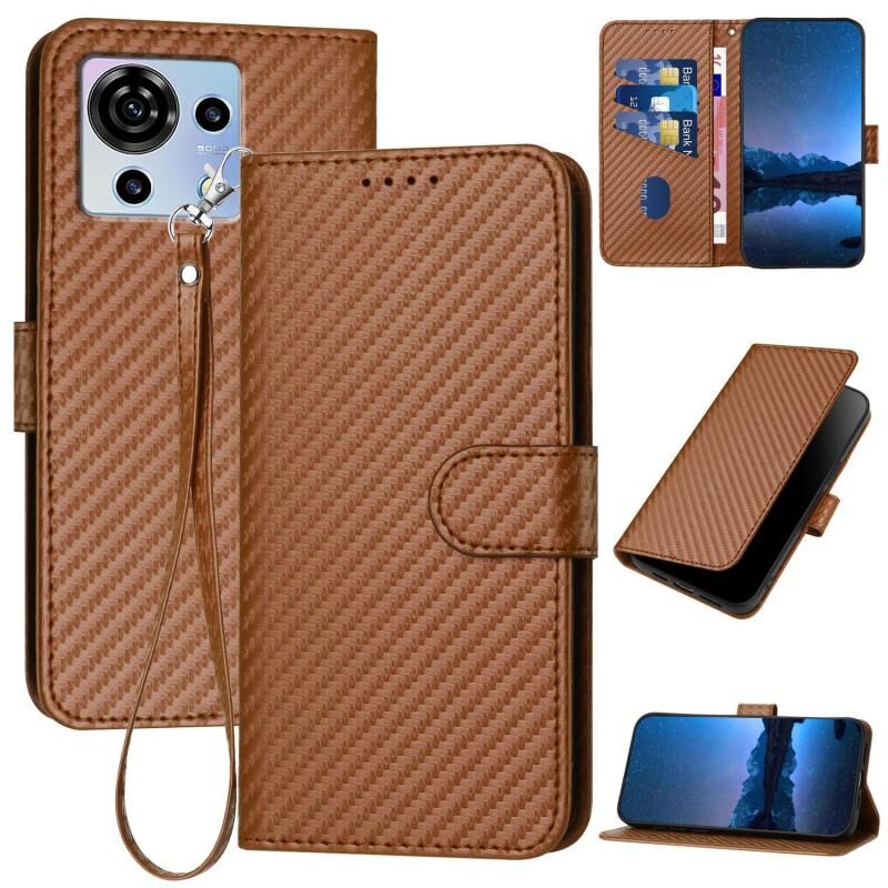For ZTE Blade V50 Vita YX0070 Carbon Fiber Buckle Leather Phone Case with Lanyard(Coffee)