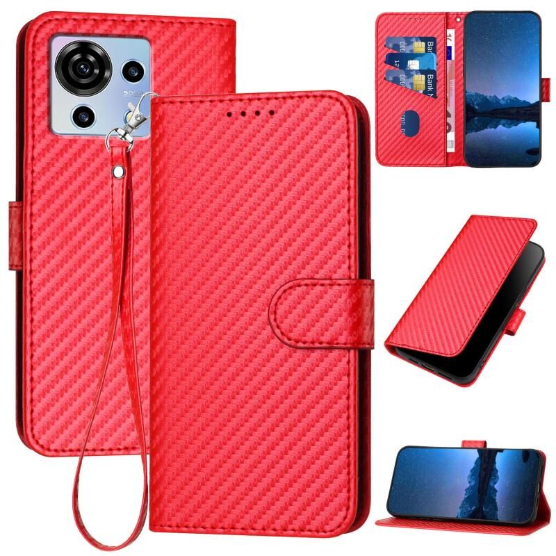 For ZTE Blade V50 Vita YX0070 Carbon Fiber Buckle Leather Phone Case with Lanyard(Red)