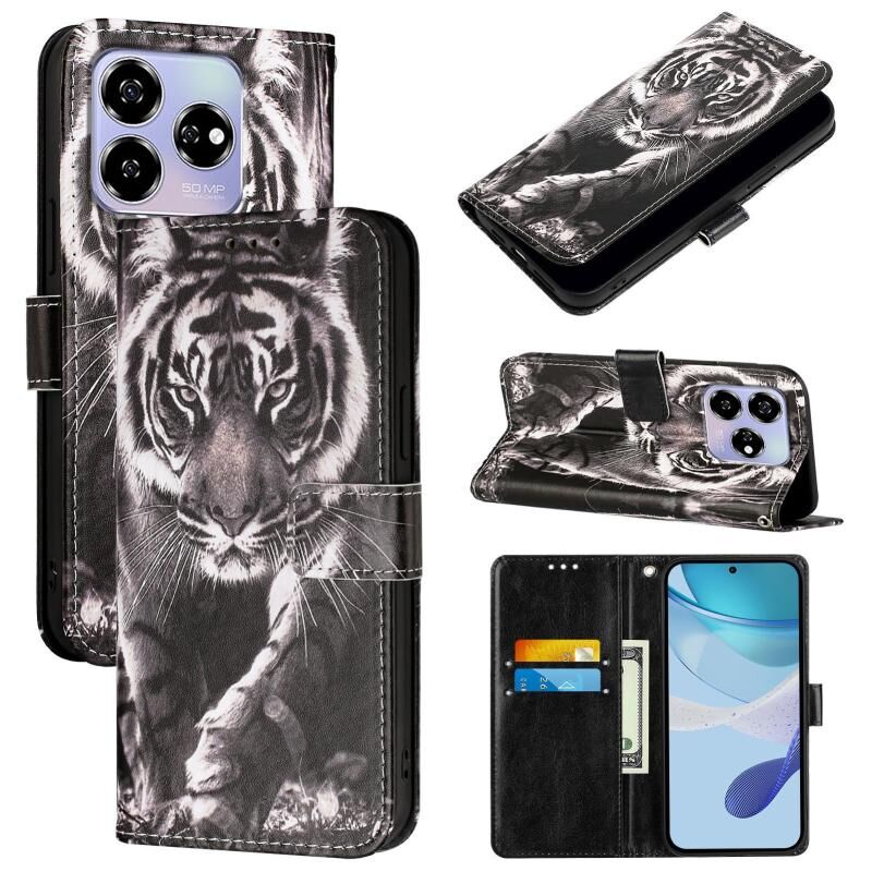 For ZTE Blade V60 / Axon 60 4G Colored Drawing Pattern Plain Weave Leather Phone Case(Black And White Tiger)
