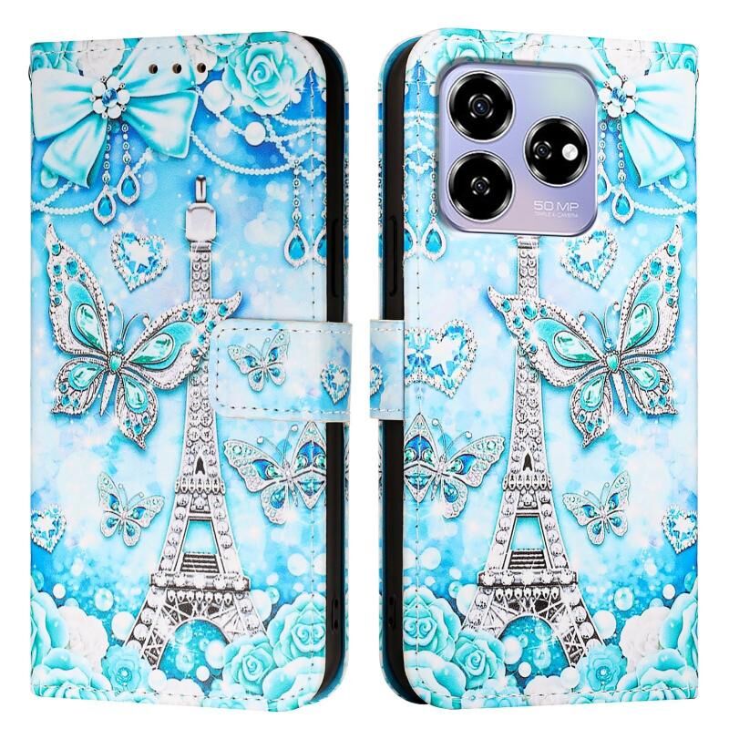 Θήκη τηλεφώνου από δέρμα με απλή ύφανση και πολύχρωμο σχέδιο (Πύργος Πεταλούδας) για ZTE Blade V60 / Axon 60 4G.
