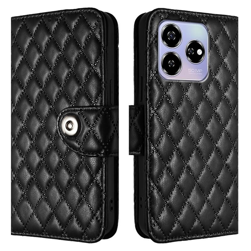 Για ZTE Blade V60 / Axon 60 4G Rhombic Texture Flip δερμάτινη θήκη τηλεφώνου με κορδόνι (μαύρο)
