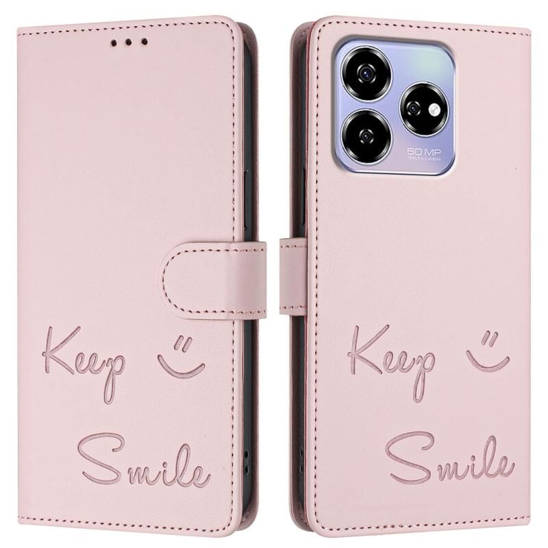 Για ZTE Blade V60 / Axon 60 4G Χαμόγελο ανάγλυφο RFID δερμάτινη θήκη τηλεφώνου (ροζ)