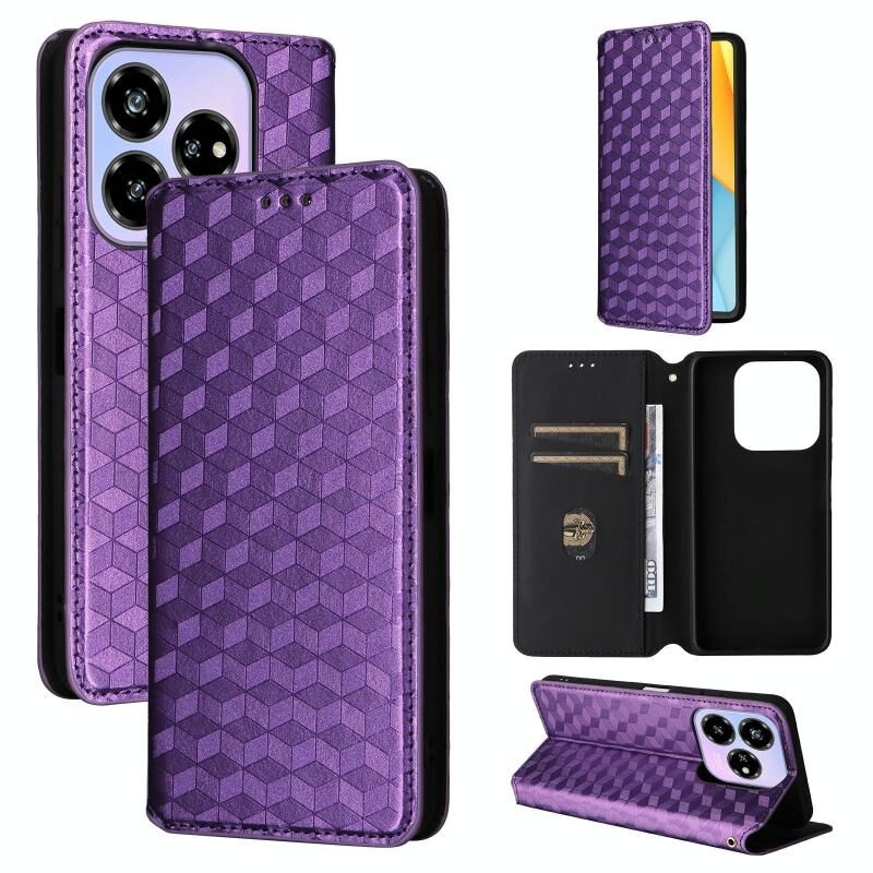 For ZTE Blade V60 Design Cubic Grid Texture Flip Leather Phone Case(Purple)