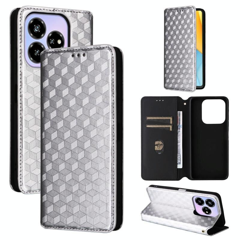 For ZTE Blade V60 Design Cubic Grid Texture Flip Leather Phone Case(Silver)