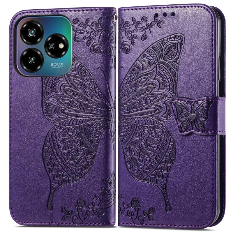 For ZTE Blade V60 Vita Butterfly Love Flower Embossed Leather Phone Case(Dark Purple)