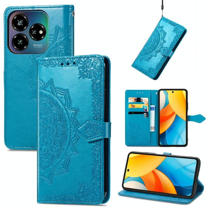 Θήκη τηλεφώνου από δέρμα με ανάγλυφο σχέδιο Mandala Flower για ZTE Blade V60 Vita (Χρυσό Ρόδι)