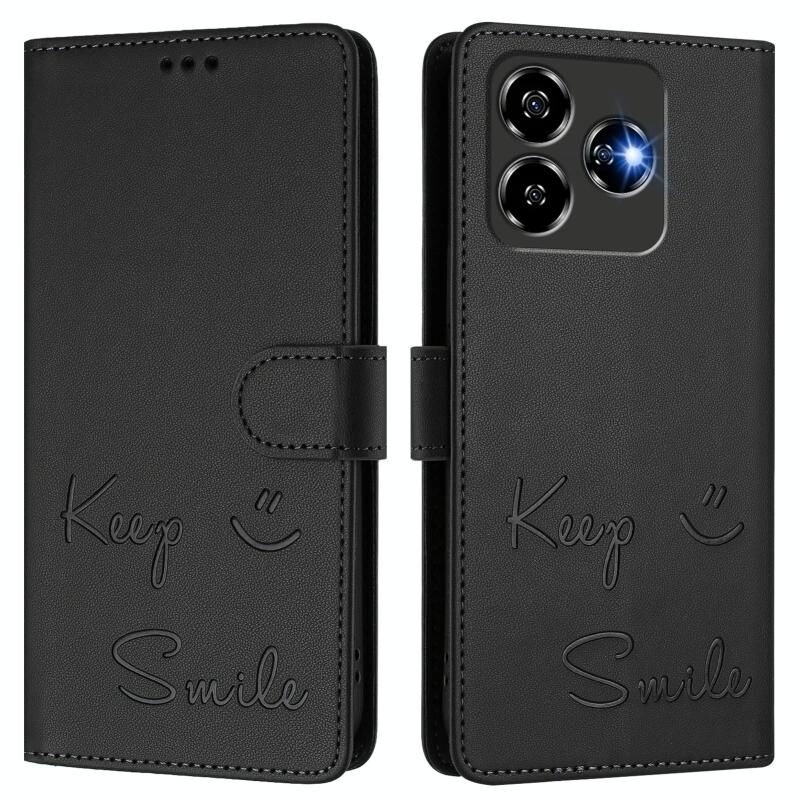 Για ZTE Blade V60 Vita Vita Χαμόγελο ανάγλυφο RFID δερμάτινη θήκη τηλεφώνου (Μαύρο)