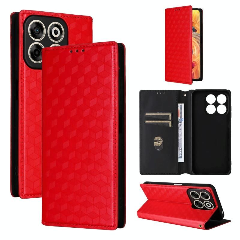 For ZTE Blade V70 4G / nubia V70 4G Cubic Grid Texture Flip Leather Phone Case(Red)