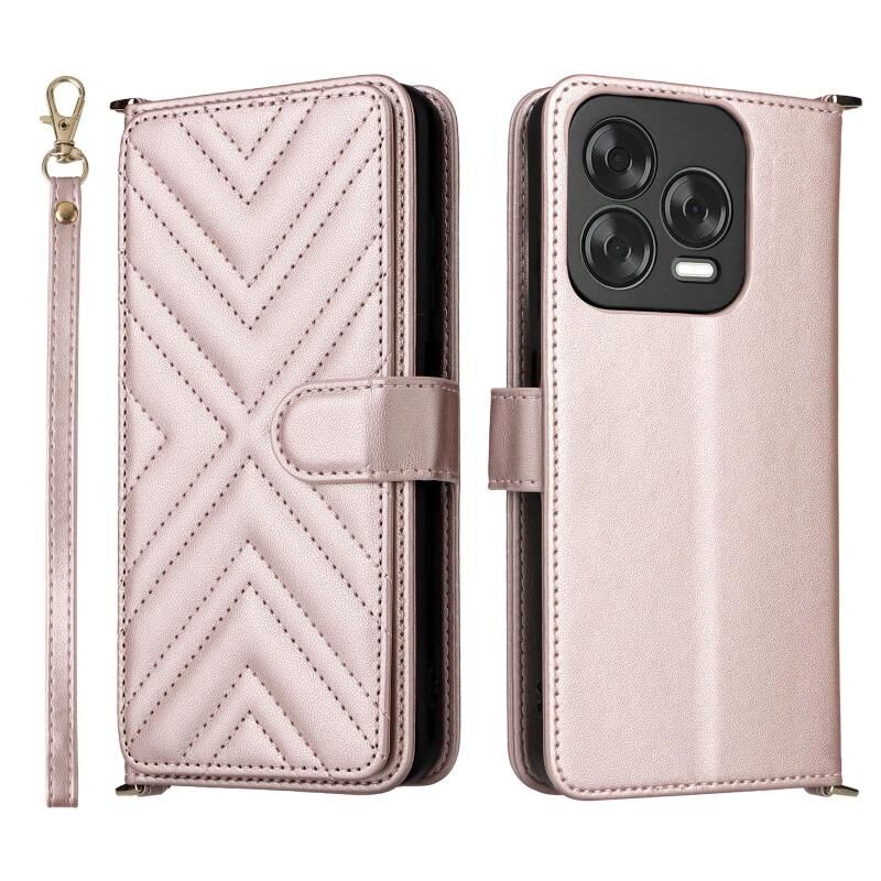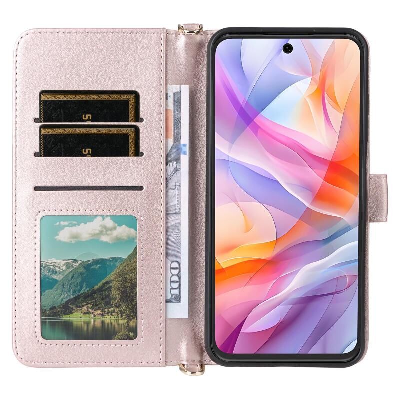 For ZTE Blade V70 Design 4G Multifunctional 6-Card Slots Leather Phone Case with Wrist Strap(Pink)