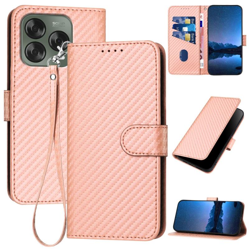 Θήκη τηλεφώνου για ZTE Blade V70 Design YX0070 από δέρμα με αγκράφα από ανθρακονήματα και λουρί (ρόζ)