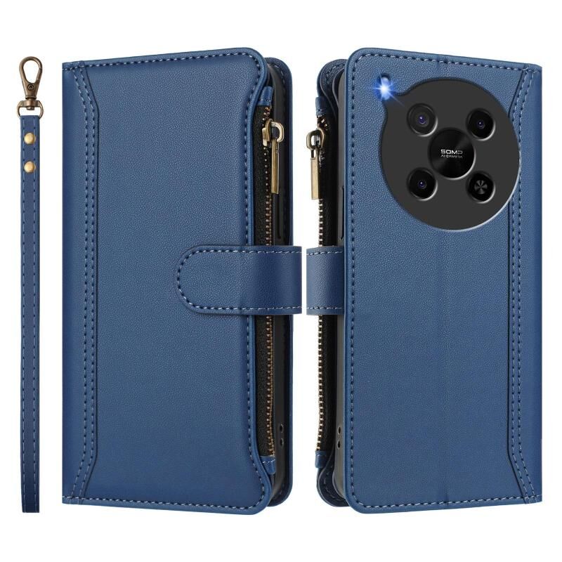 For ZTE Blade V70 Max Magnetic Closure 9 Card Slots Zipper Leather Case with Hand Strap(Dark Blue)