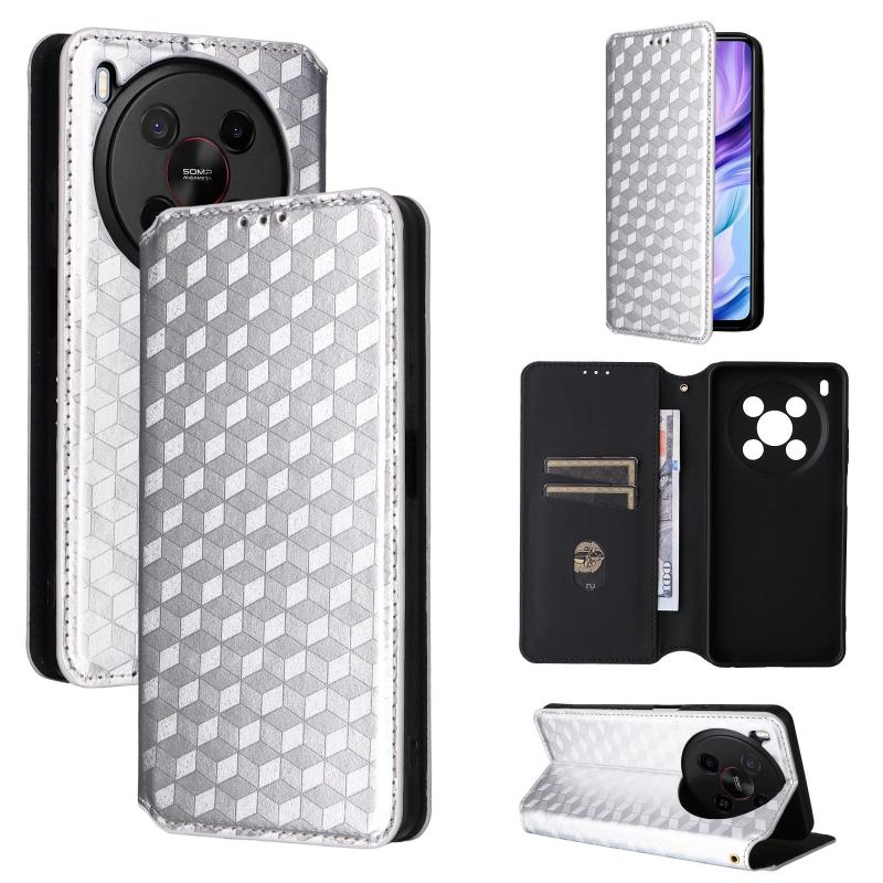 For ZTE Blade V70 Max / nubia V70 Max Cubic Grid Texture Flip Leather Phone Case(Silver)