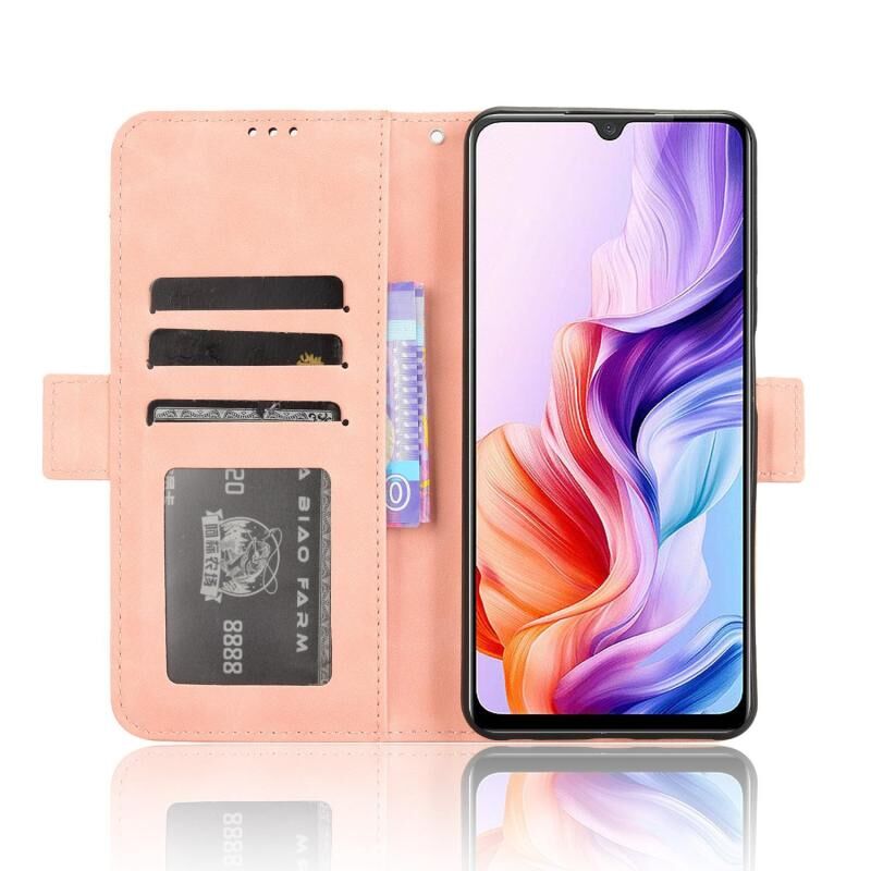 Θήκη τηλεφώνου από δέρμα για ZTE Blade V70 Max με υφή μοσχαρίσιου δέρματος, θήκες καρτών (Ροζ)