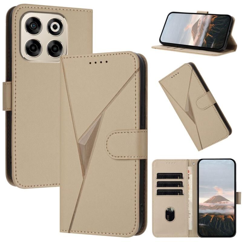 Θήκη τηλεφώνου από δέρμα με σχέδιο τριγώνου και αγκράφα για ZTE Blade V70 (Χρυσό)