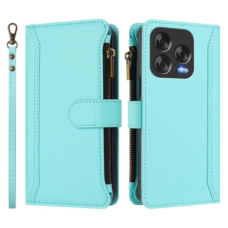 For ZTE Blade V70 Vita / Nubia V70 Design Magnetic Closure 9 Card Slots Zipper Leather Case with Hand Strap(Mint Green)