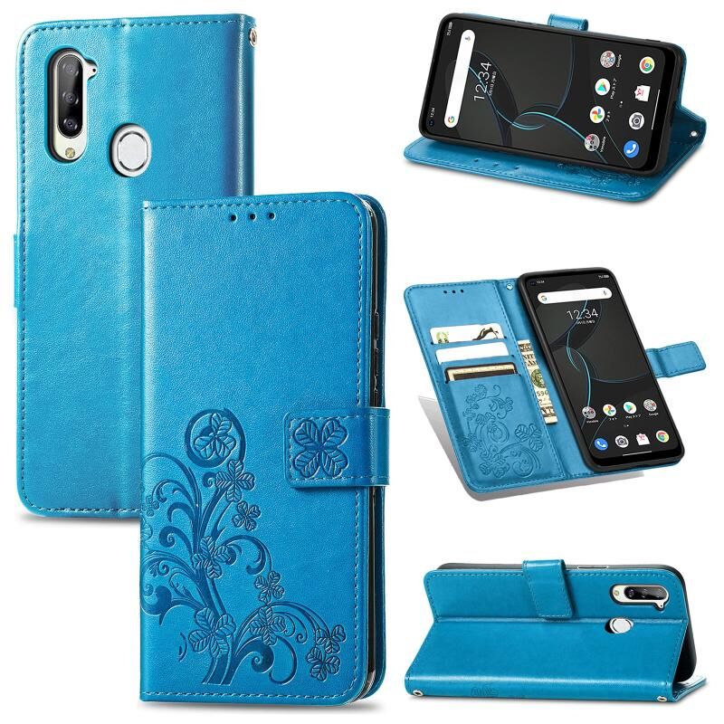 Θήκη κινητού τηλεφώνου από δέρμα με λουράκι, θήκη για κάρτες, πορτοφόλι και λειτουργία βάσης στήριξης για ZTE Libero 5G με ανάγλυφο σχέδιο τριφυλλιού και αγκράφα (Χρυσό Ρόδι)