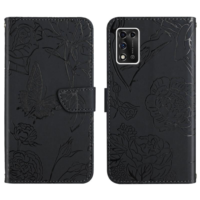 For ZTE Libero 5G II Skin Feel Butterfly Peony Embossed Leather Phone Case(Black)