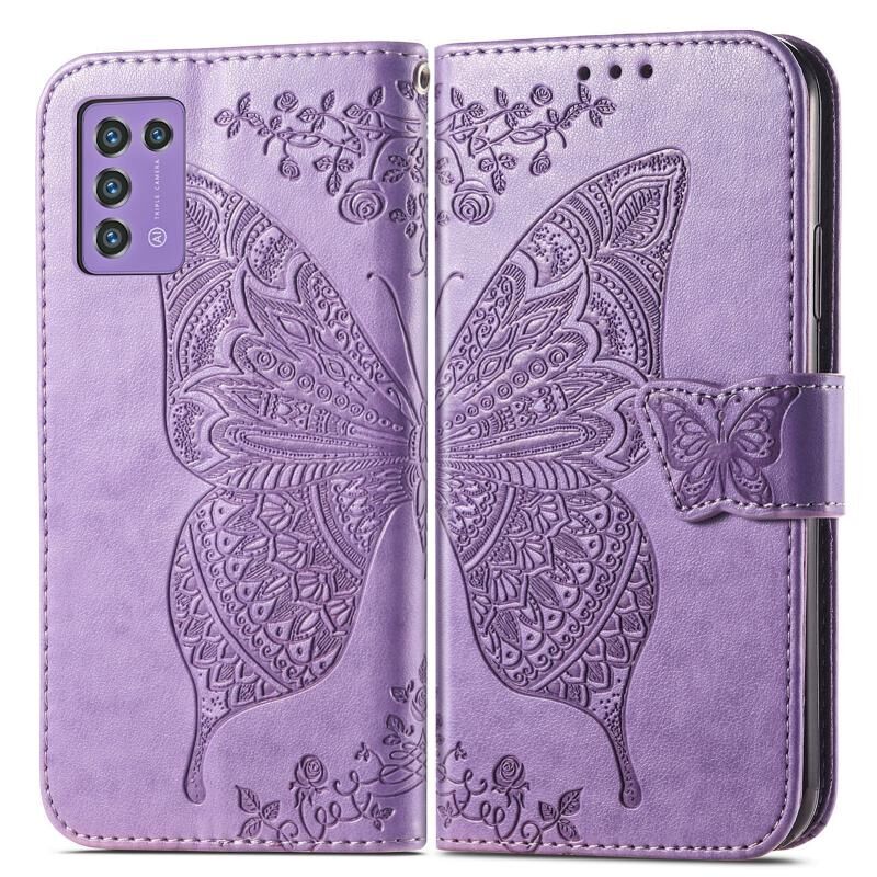 Θήκη τηλεφώνου από δέρμα με ανάγλυφο σχέδιο λουλουδιών Butterfly Love για ZTE Libero 5G III (Λεβάντα)