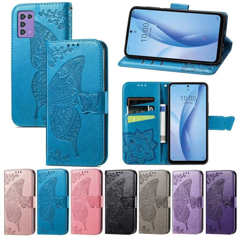 Θήκη τηλεφώνου από δέρμα με ανάγλυφο σχέδιο πεταλούδας και λουλουδιών για ZTE Libero 5G III (Μπλε)