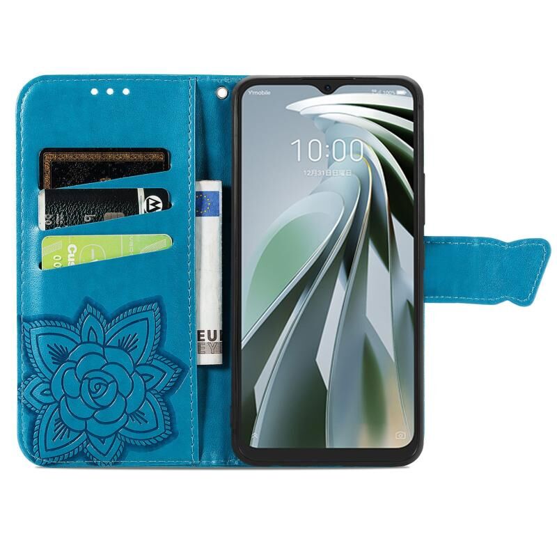 For ZTE Libero 5G IV Butterfly Love Flower Embossed Leather Phone Case(Blue)