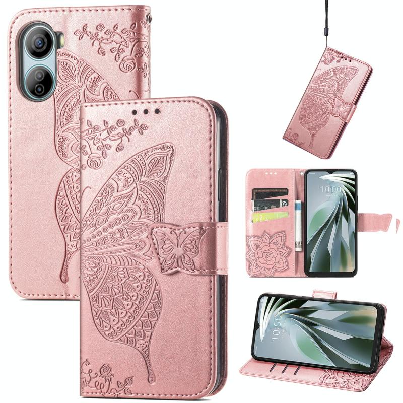 For ZTE Libero 5G IV Butterfly Love Flower Embossed Leather Phone Case(Rose Gold)