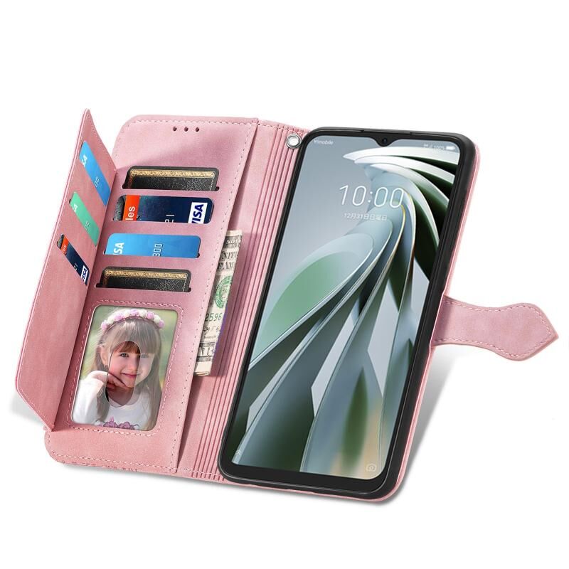 Για ZTE Libero 5G IV ανάγλυφο λουλούδι φερμουάρ δερμάτινη θήκη τηλεφώνου (ροζ)