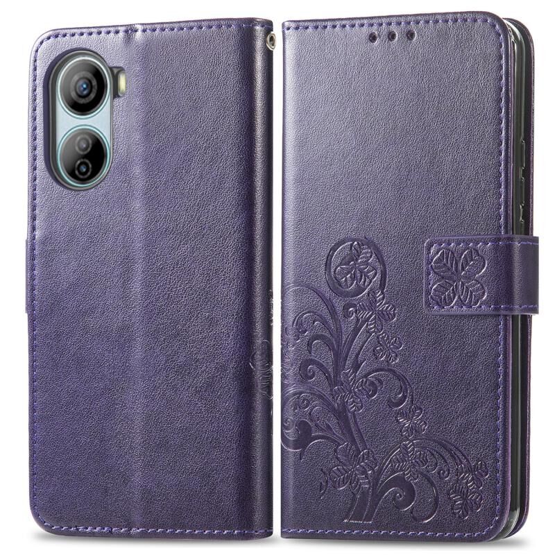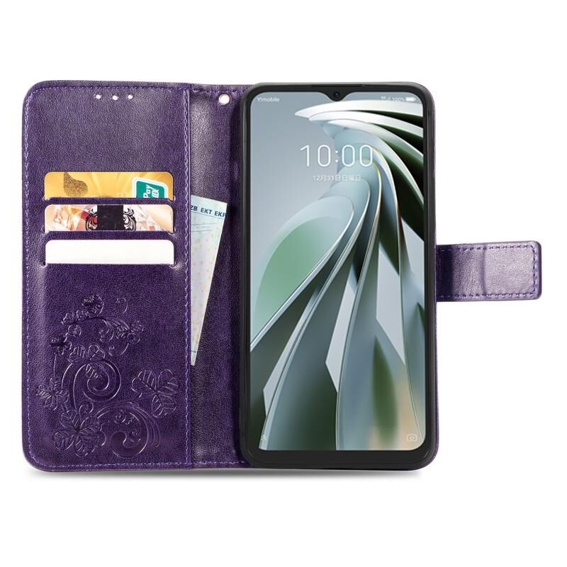 Για ZTE Libero 5G IV τετράφυλλο κούμπωμα ανάγλυφη δερμάτινη θήκη τηλεφώνου (μωβ)